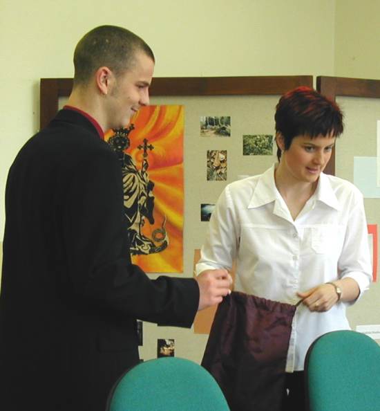 V pátek 21. května 2004 vykonali maturitní zkoušku poslední tři studenti SOŠ oboru sociální péče. Poté se sešli všichni letošní absolventi spolu s maturitní komisí a vedením školy k ukončení maturitních zkoušek. Za studenty se s maturitní komisí kytičkou rozloučili Bohumil Klof a Dana Dašková. Absolventi se s vedením školy a pedagogickým sborem sejdou ještě jednou v pondělí 24. května na kláštereckém zámku k slavnostnímu předávání maturitních vysvědčení.