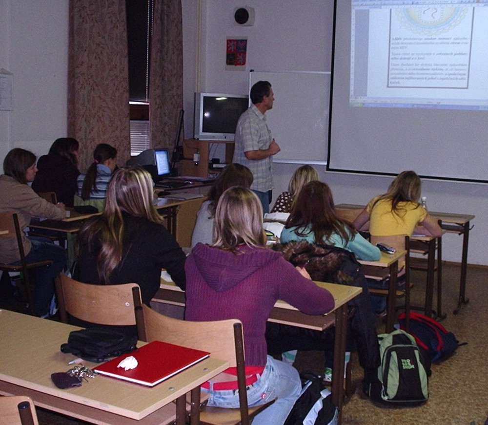Dne 19. 11. 2007 byla pro studenty II.S pořádána přednáška o šíření viru HIV a problematice AIDS. Přednáška byla vedena Mgr. Šafaříkem. Studenti si doplnili informace i HIV a AIDS, jejich vzniku, šíření a prevence. Během přednášky aktivně spolupracovali s Mgr. Šafaříkem a tak mohli uplatnit již získané vědomosti. Tato akce společně s exkurzí do K-centra a AIDS poradny je součástí projektu „AIDS – Studenti Dávají Informace o AIDS.“