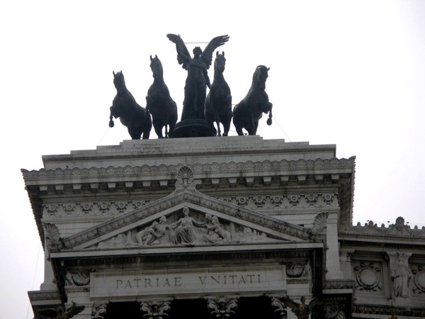 Památník z bílého vápence, také nazývaný Vittoriano, byl vybudován na paměť sjednocení Itálie.Práce byli zahájeny v roce 1885, ale dokončení trvalo celých čtyřicet let.