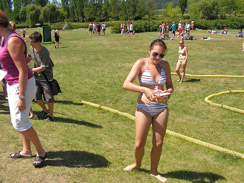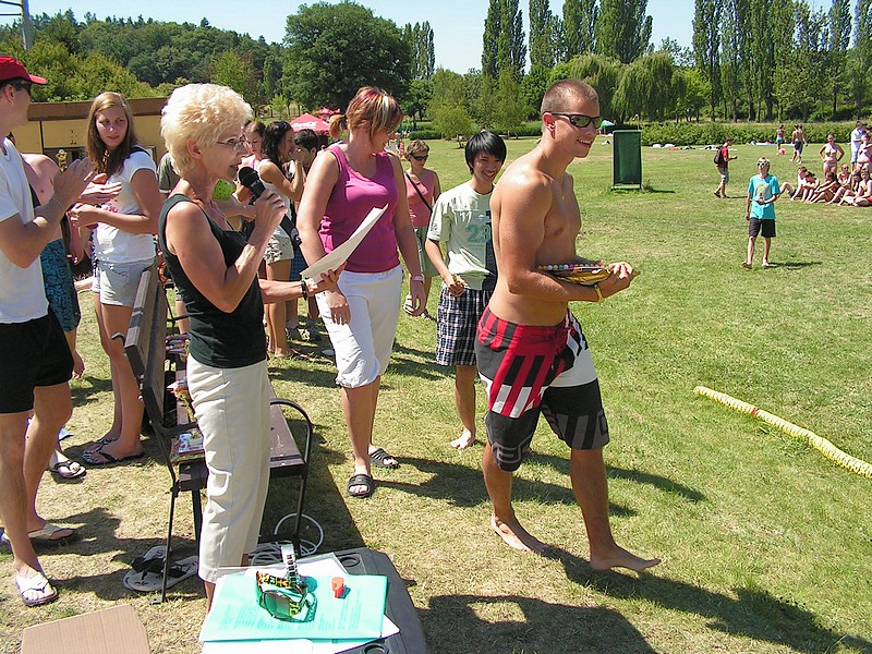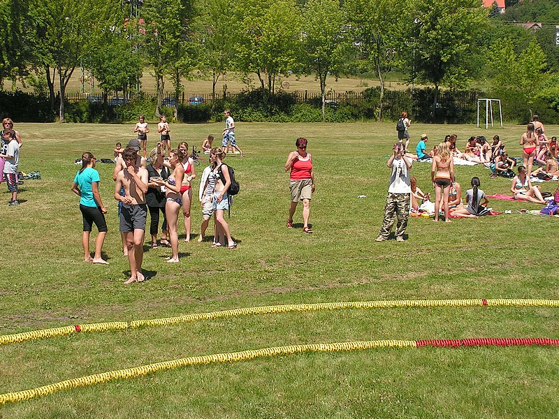 (zatím jen obrázky), kdo sportoval, určitě se někde najde, kdo se povaloval na sluníčku, bude se hledat obtížněji. Ti, kteří se záhy "vypařili", se patrně nenajdou vůbec. Celé dopoledne bylo skvělé, obdivujeme energii, se kterou se všichni zájemci vrhli do soutěžení a nehleděli na značné vedro. Vládla pohoda a veselí, děkujeme za přípravu a provedení zejména Mgr. T.Eliášové a kol.