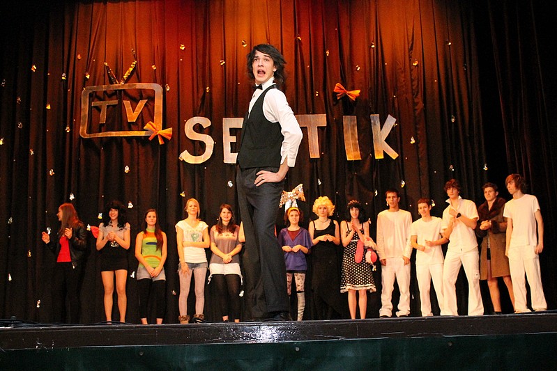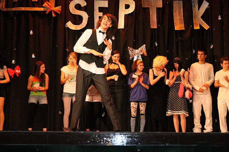 Na pódiu kulturního domu se představila se svým programem zcela nová televizní stanice TV Septik. Její moderátoři připravili na úvod pro své diváky rozkošnou scénku : Snídaně s Vajdou a pak již následovaly jednotlivé (mimochodem vynikající) programy jednotlivých tříd prokládané reklamami, teleshopingem a samozřejmě i vyhlášením ankety o Nej - . V té se na nejvyšších místech zaslouženě umístili jako Největší sympaťák (Mgr. D. Kodytek) a Největší pracant roku (RNDr. I. Peteriová) a samozřejmě Nejlepší matka (Mgr. Š. Vajdečková) někteří pedagogové naší školy.