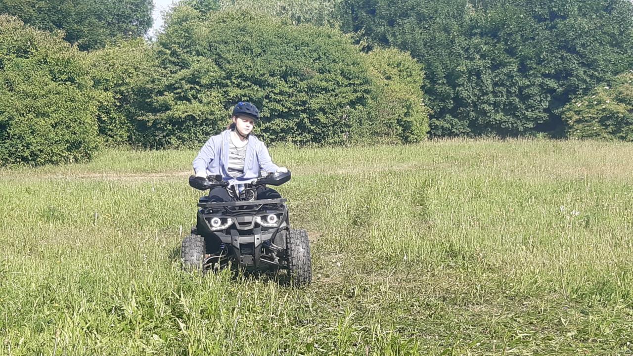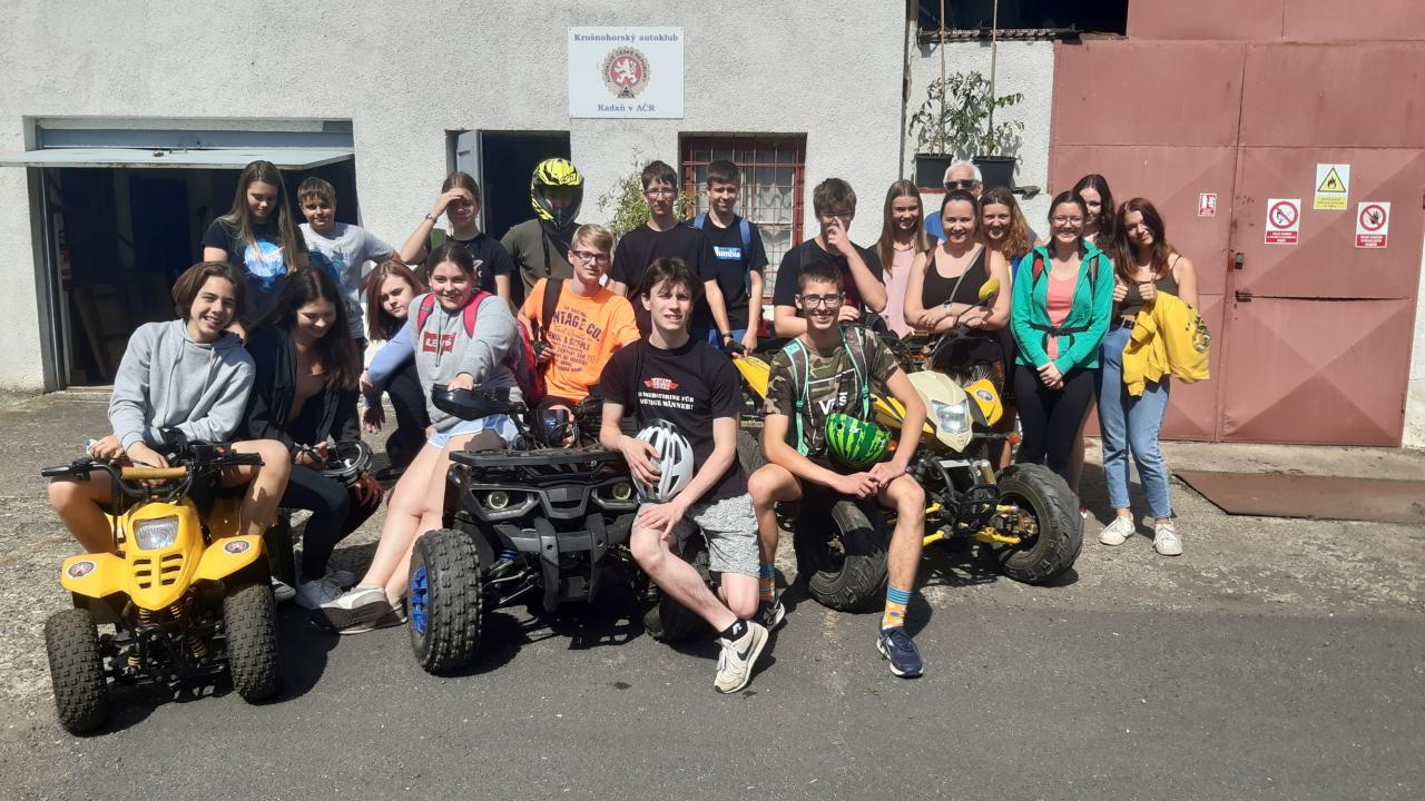 Naším cílem bylo vyzkoušet si jízdu na čtyřkolkách. I přes počáteční ostýchavost se ve valné většině třídy projevil obrovský talent – téměř všichni si vyzkoušeli i složitější okruh.