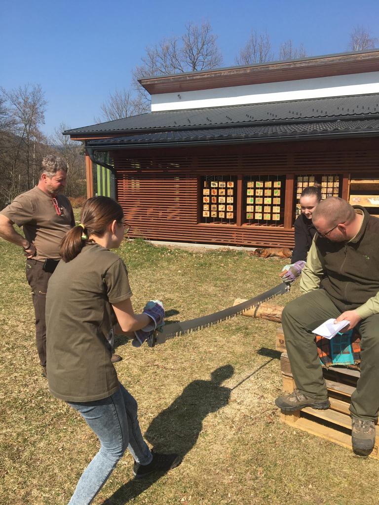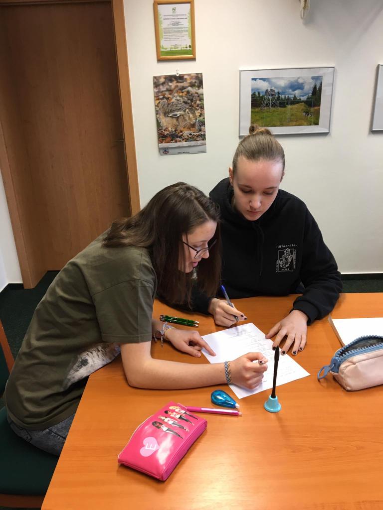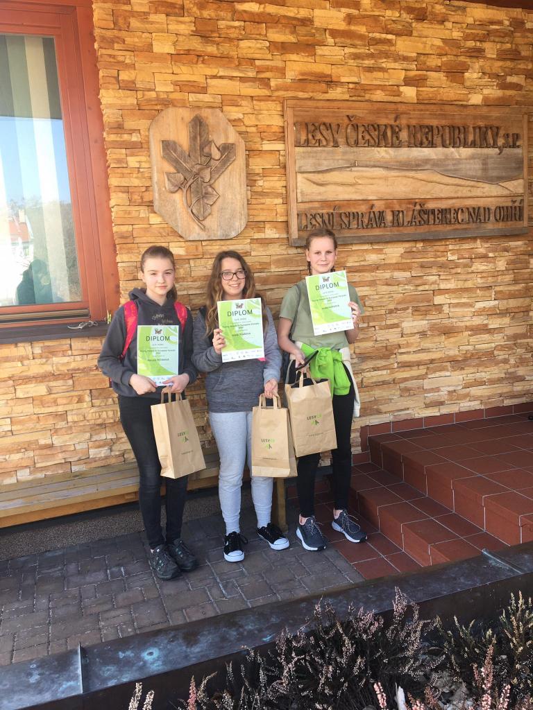 Ani nižší gymnázium se nenechalo zahanbit a postoupilo na oblastní přebor mladých lesníků a milovníků přírody do Žlutic. Eliška Spurná a Anička Doležalová vyhrály a společně s Matym Kutílkem nás budou reprezentovat v poznávání rostlin, živočichů, lesních zvuků a lesní techniky. Holky úspěšně řezaly poleno velkou pilou a celé dopoledne jsme si všichni moc užili. Poděkování patří také bramborovému družstvu složenému z Máji Šestákové, Ádi Tesařové a Lenky Humlové. Těšíme se na další soutěže v přírodě.