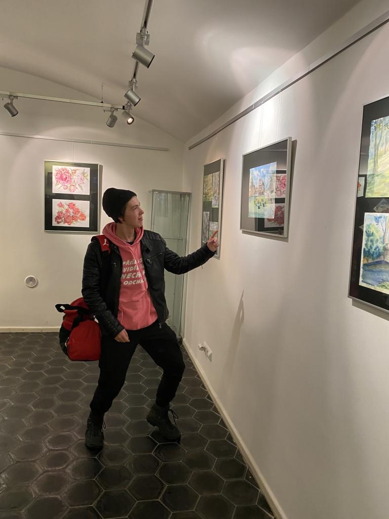 Studenti 1.G navštívili galerii Kryt a prohlédli si výstavu obrazů Oleny Dolghove z Charkova a Šimona Čekala z Klášterce nad Ohří.