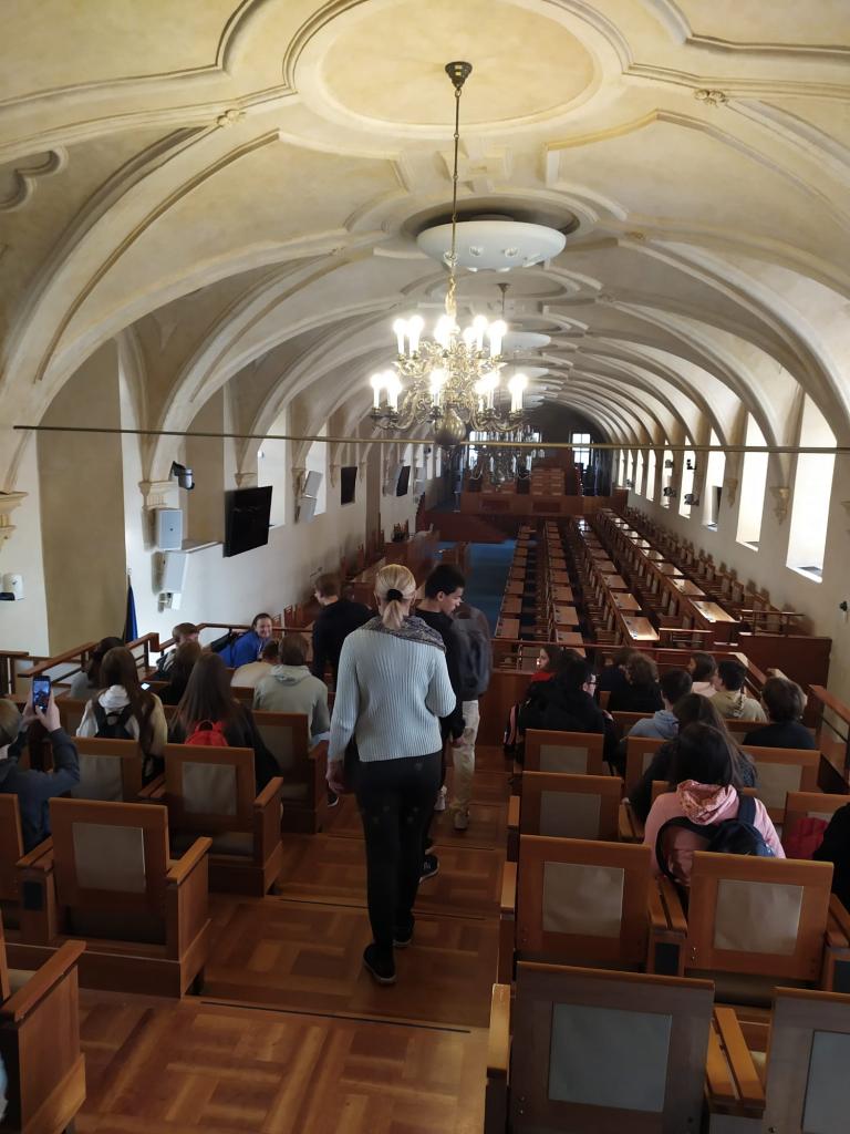 Prohlídky byly vedeny erudovanými průvodci, kteří svým výkladem upoutali všechny studenty. Dověděli jsme se nejen mnoho informací o fungování těchto orgánů, ale i zajímavosti z historie obou budov. Všechny určitě využijeme při hodinách dějepisu a společenskovědního základu.