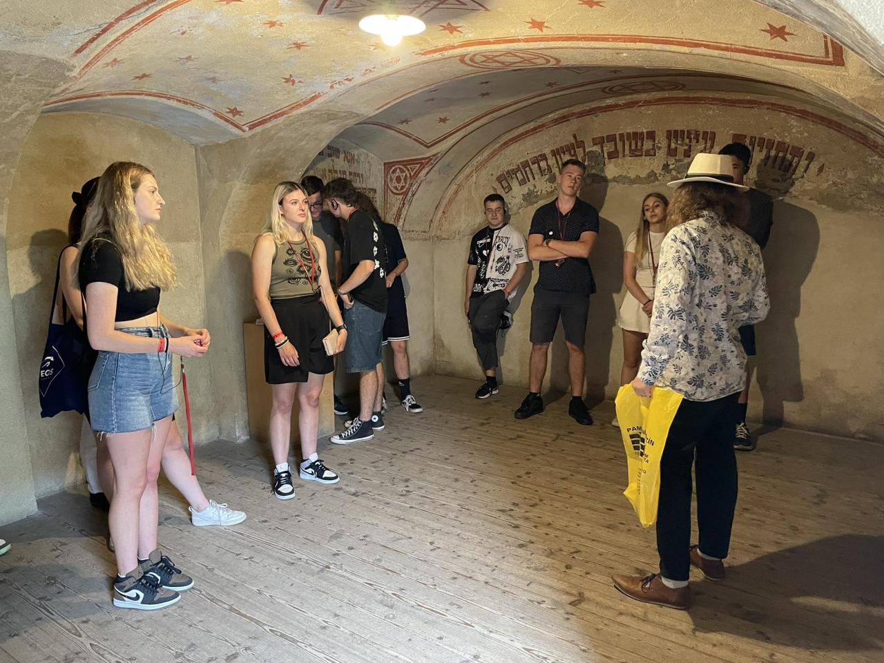 Po úvodní přednášce jsme pokračovali prohlídkou prostoru Ghetta – tedy samotného města – a mnoha vnitřních expozic. Mohli jsme tak vidět prostor školy, modlitebny, kolumbária či krematoria. Před večeří následoval workshop a celý den byl završen prohlídkou kasemat terezínského pevnostního systému. Druhý den dopoledne jsme se přesunuli do Malé pevnosti, která fungovala jako vězení a sídlo jednotek SS. Po návštěvě tohoto místa následoval přesun zpět do města a po obědě společné závěrečné zhodnocení akce.