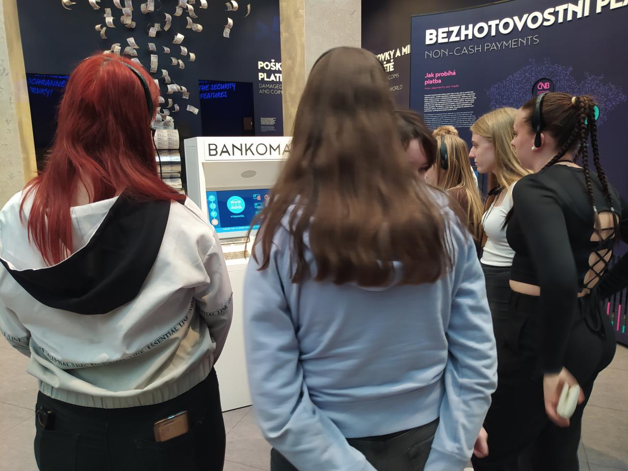 V ČNB jsme navštívili obě expozice, a to „ Lidé a peníze“ a „ Za měnou“. Během návštěvy jsme získali informace o vývoji peněžnictví, prohlédli jsme si druhou největší zlatou minci na světě, potěžkali jsme si zlatou cihličku, na rotopedu jsme krotili inflaci, dozvěděli jsme se, jak pracuje Bankovní rada ČNB a mnoho dalších zajímavostí o naší měně, Euru a naší centrální bance.