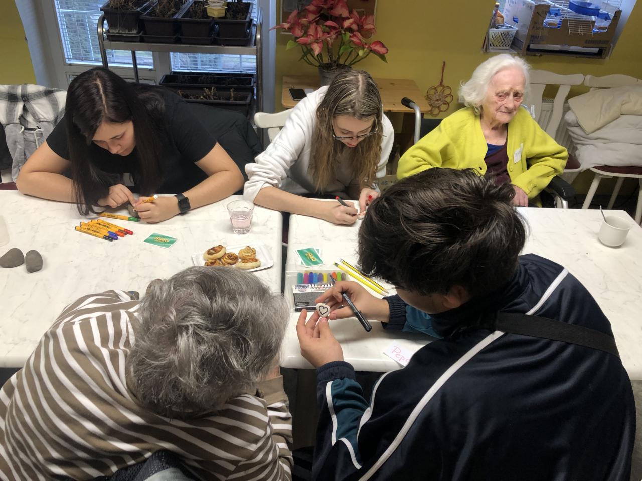 Dne 22. 2. se uskutečnilo již třetí mezigenerační setkávání v Domově pro seniory v Kadani. Studenti byli rozdělení do tří skupin. Každá skupina měla za úkol vymyslet a zrealizovat zajímavou volnočasovou aktivitu, která bude klienty Domova pro seniory bavit a bude pro ně zajímavým zpestřením. První skupina měla povídání o zajímavých tématech ze života, během kterého si všichni vyrobili krásné náramky z korálků.