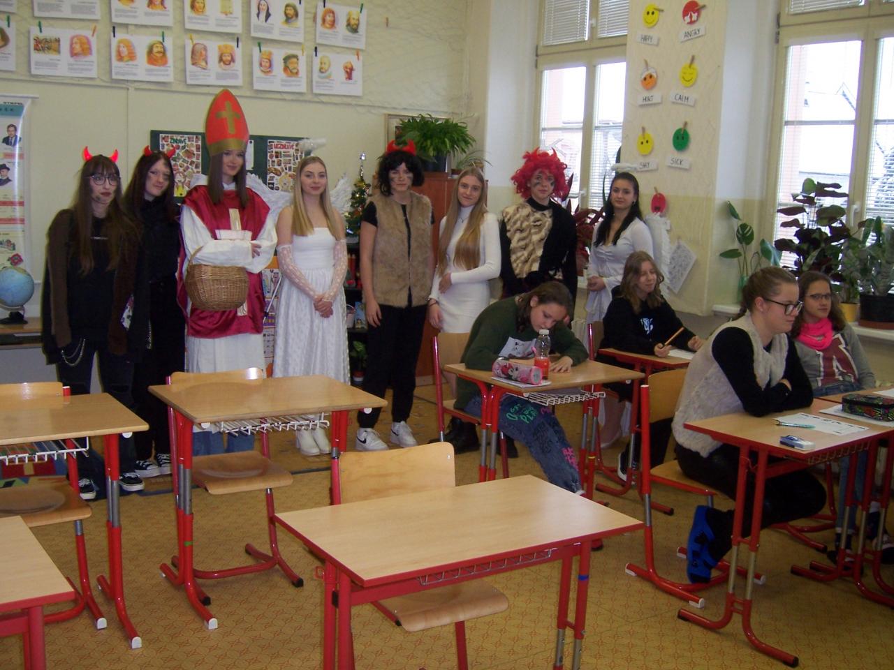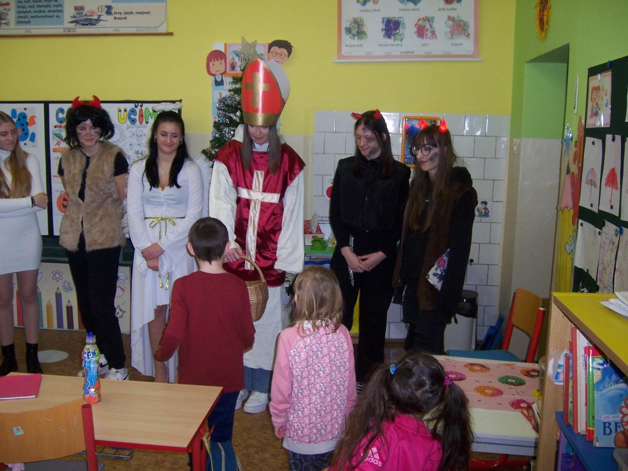 Nejdříve navštívily všechny třídy, kde žáci předvedli své básničky a tanečky, za které získali odměnu od Mikuláše a pohlazení od andělů. I čerti byli letos velmi hodní a nikoho si s sebou v pytli neodnesli.