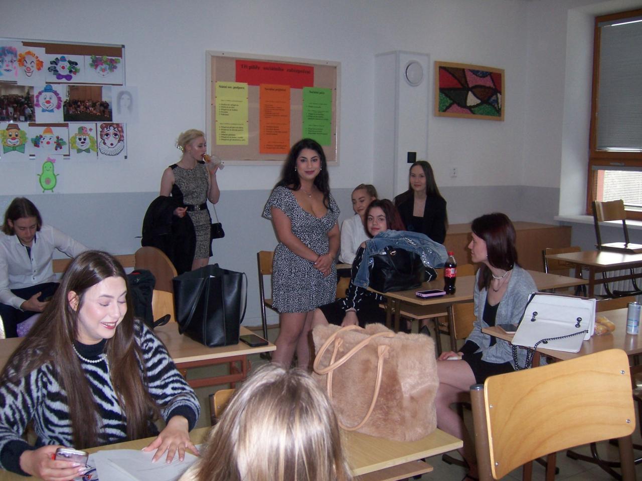 Všichni studenti se dopoledne sešli u písemné části složené ze čtyř příkladů výpočtu dávek sociálního zabezpečení, losovali si vždy jednu ze dvou variant.