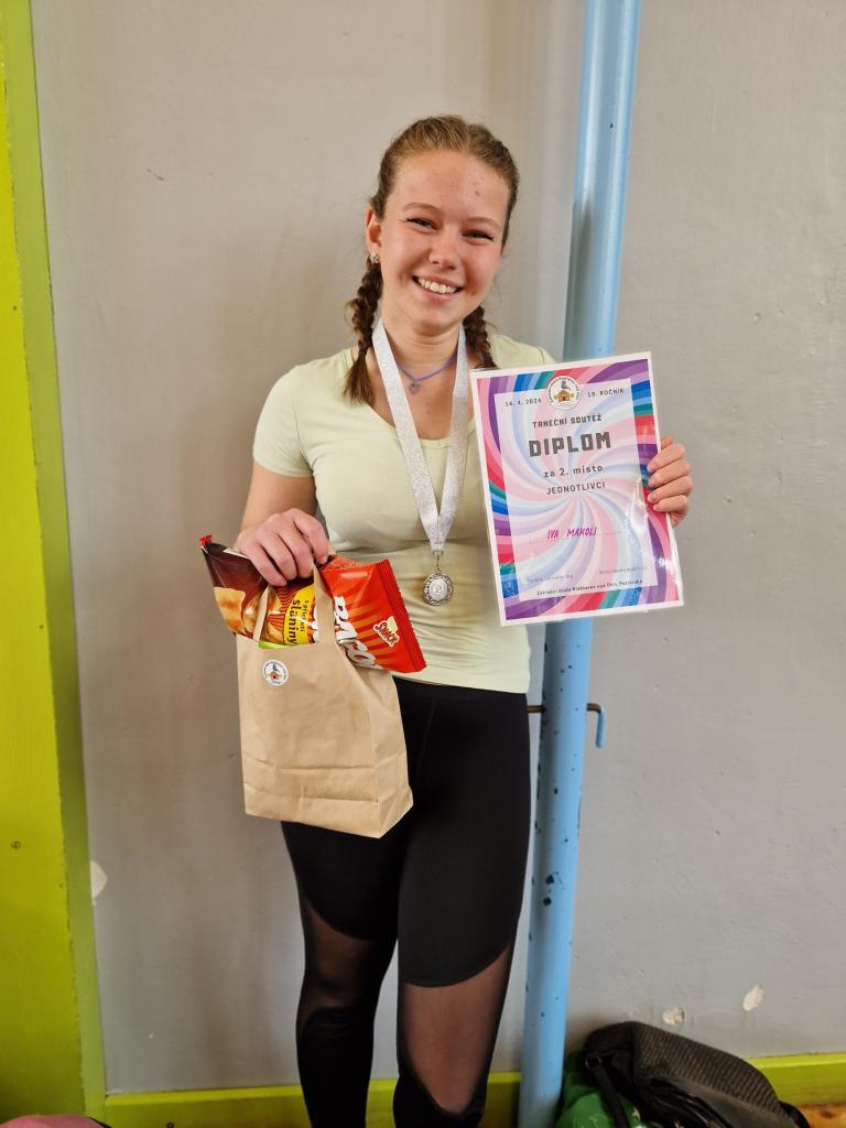 Velká gratulace patří tanečnici Ivě Makoli, která se v soutěži jednotlivců umístila na krásném 2. místě. Její talent a vytrvalost jsou nádherným příkladem pro ostatní.