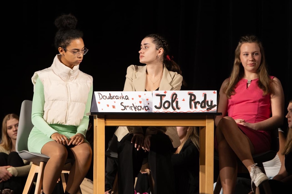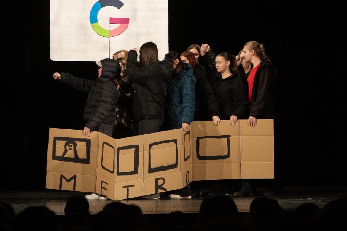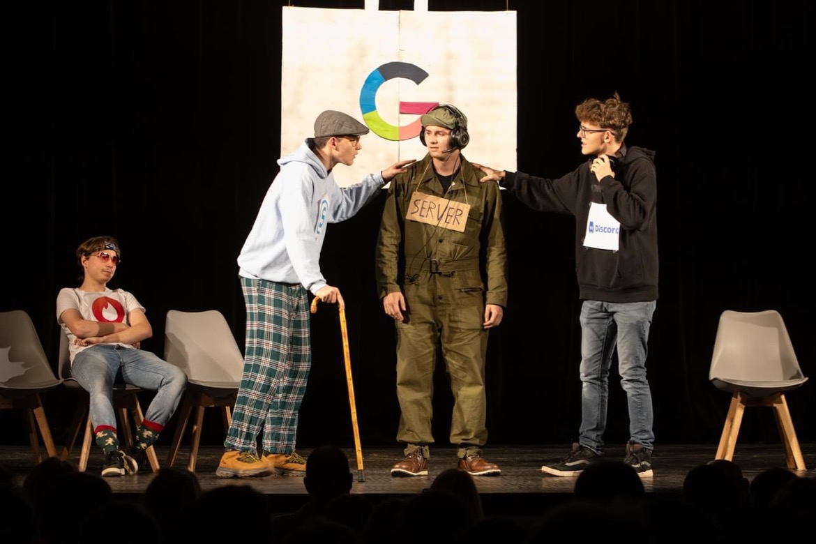 Letošním tématem byl ,,Svět internetu" a jednotlivá představení mnohé z nás nejen pobavila, ale také poučila o využití aplikací, jako například Spotify, Wattpad, TikTok aj. Třídy to neměly vůbec jednoduché, nejen že musely zpracovat aplikaci, ale byla jim dána i forma a dvě slova, která musela během scénky zaznít. Nutno podotknout, že si s tím všechny třídy poradily s grácií.