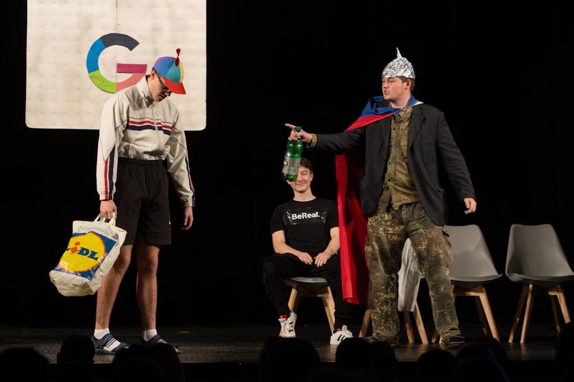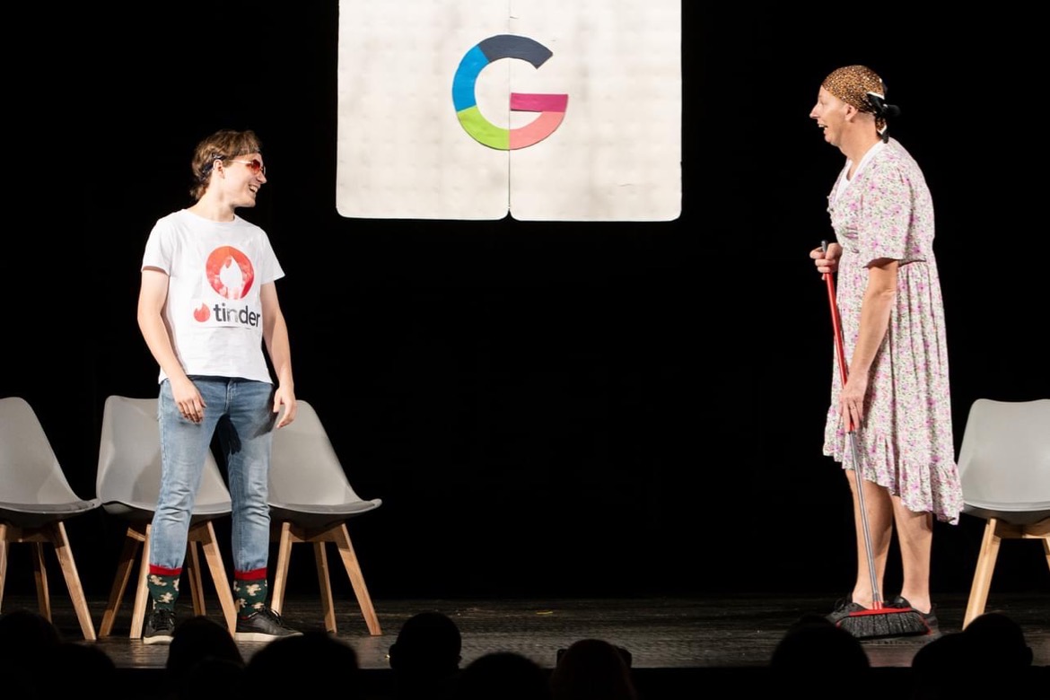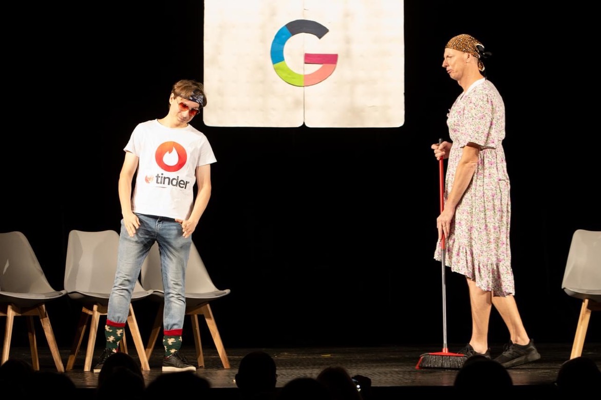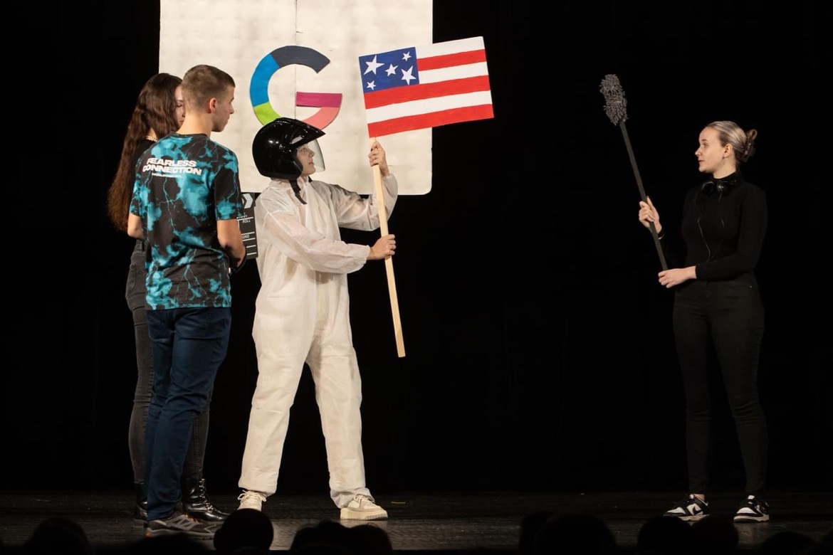 Letošním tématem byl ,,Svět internetu" a jednotlivá představení mnohé z nás nejen pobavila, ale také poučila o využití aplikací, jako například Spotify, Wattpad, TikTok aj. Třídy to neměly vůbec jednoduché, nejen že musely zpracovat aplikaci, ale byla jim dána i forma a dvě slova, která musela během scénky zaznít. Nutno podotknout, že si s tím všechny třídy poradily s grácií.