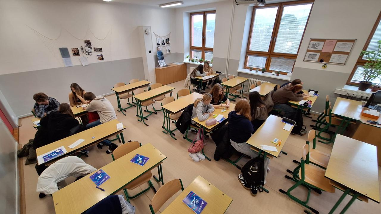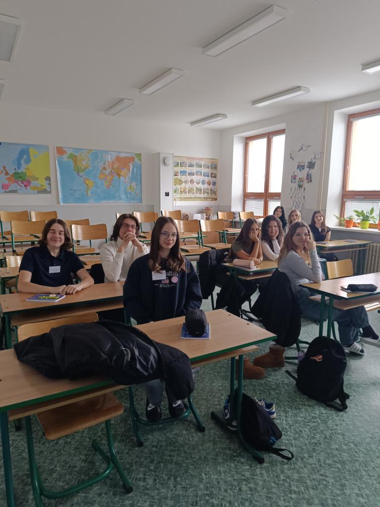 Letos jsme opět žákům základních škol nabídli možnost zúčastnit se výuky u nás. Zájemců bylo tolik, že jsme pro ně nakonec vytvořili dvě skupiny pro gymnázium a jednu skupinu pro střední odbornou školu. Každá skupina měla možnost vyzkoušet si několik vyučovacích hodin s našimi vyučujícími, například biologii, chemii, zeměpis nebo anglický jazyk. Celým dnem je provázeli dobrovolníci z druhých ročníků, kteří vzali naše potenciální žáky po páté vyučovací hodině i na oběd do naší jídelny.