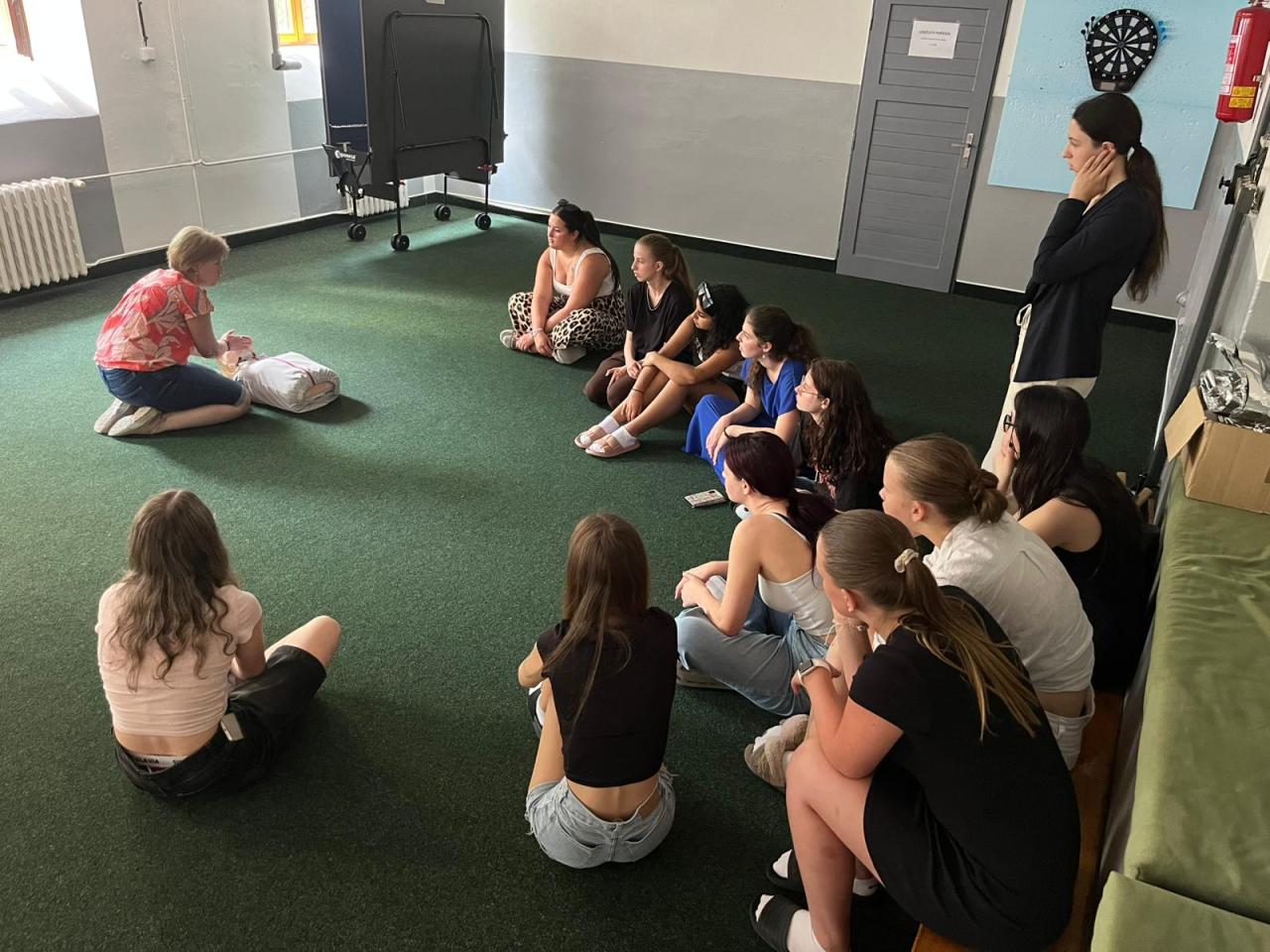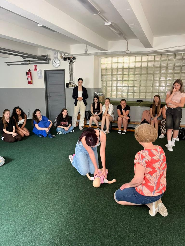 Ještě minulý týden o hodinách výchovy ke zdraví si studenti II.S vyzkoušeli laickou první pomoc. Seznámili se s tlakovými body, obvazovými technikami a se základy resuscitace.