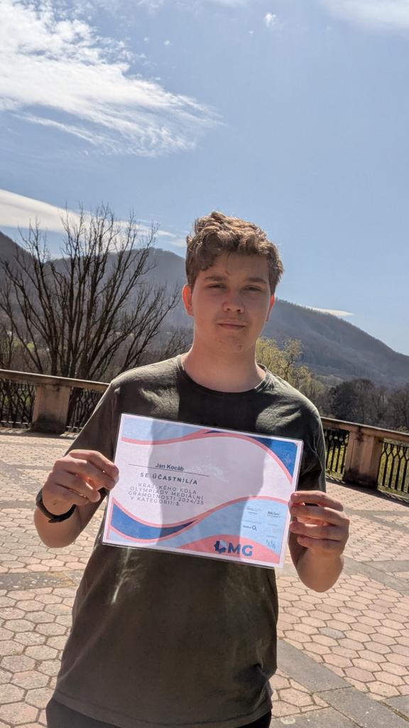V obrovské konkurenci více než 11 tisíc účastníků školních kol zazářil náš Jenda Kocáb z kvarty a postoupil tak do regionálního kola. A víte co? S přehledem i tady „strčil do kapsy“ na čtyři stovky účastníků a postupuje do velkého finále, republikového kola.