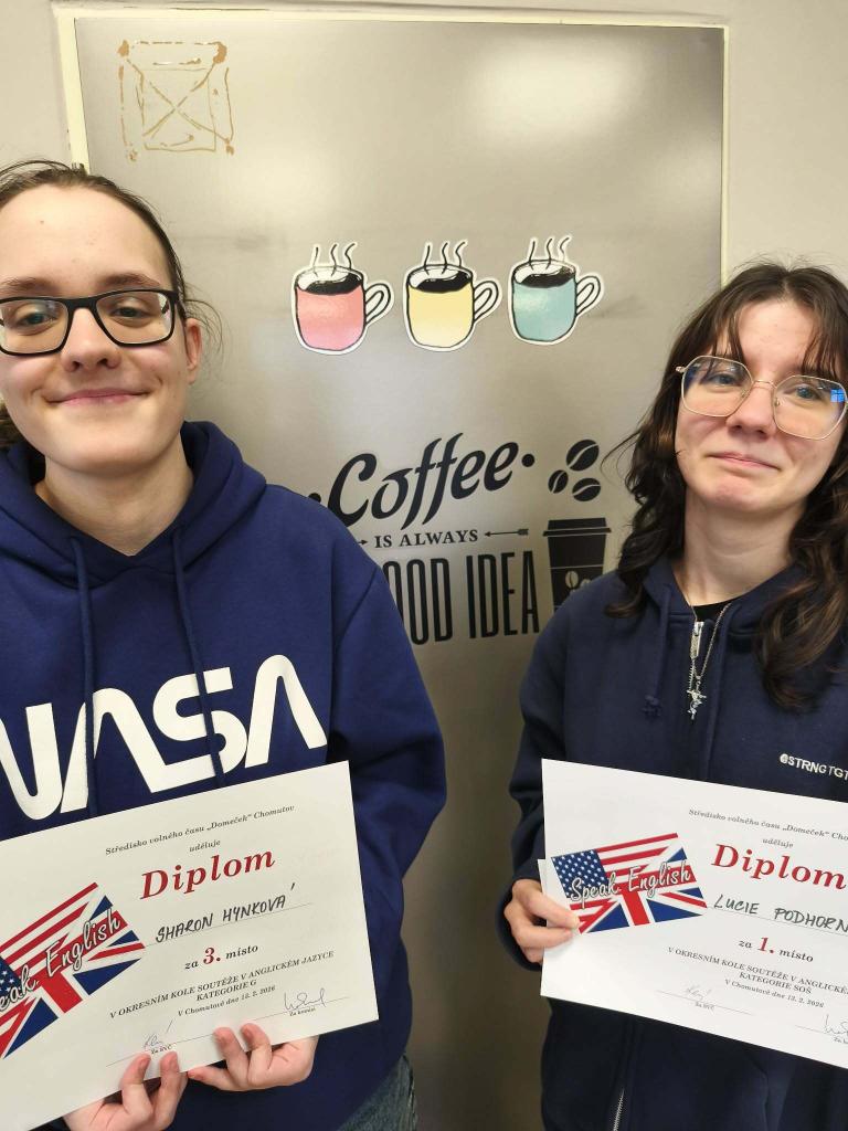 Naše Lucka Podhorná (3.S) to opět dokázala, když potřetí za sebou vyhrála v kategorii střední školy a postoupila do krajského kola. V kategorii gymnázií nás velmi úspěšně reprezentovala dvojice Sharon Hynková (2.G.) a Kryštof Duchek (sexta). První zmiňovaná se tak trochu po vzoru Metoděje Jílka účastnila olympiády poprvé a hned z toho bylo 3. místo! Letos opět rozhodovaly jednotky bodů, konkurence byla veliká a jsme rádi, že se naši studenti dokázali prosadit. Gratulujeme a přejeme hodně dalších úspěchů. WELL DONE!